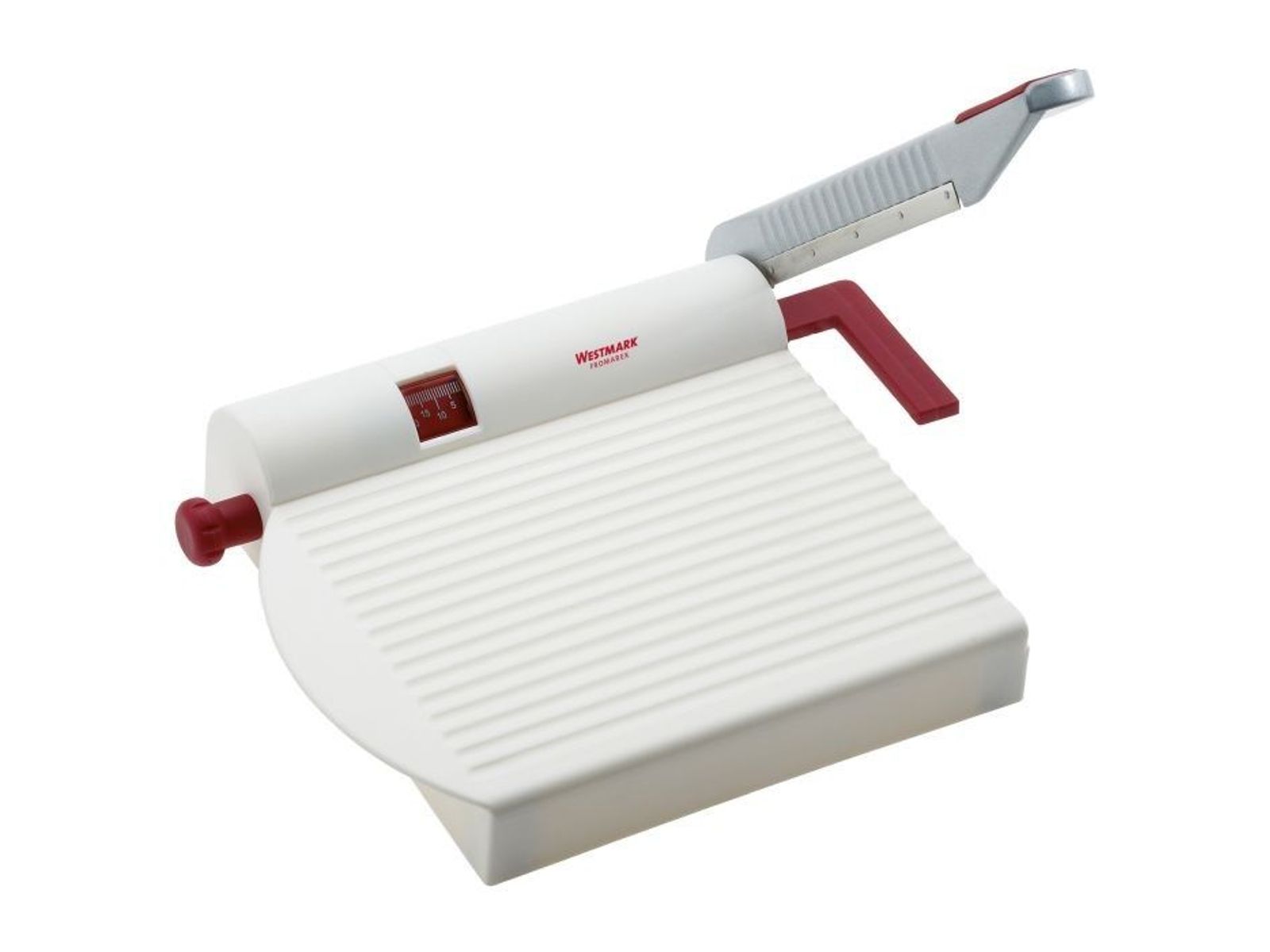 »Fromarex« is mijn onmiskenbare naam en ik ben al jaren een zeer beproefde en uitzonderlijke kaassnijder. Want ik werk met een mes en niet met een draad, zoals meestal het geval is. Hierdoor kunnen bij mij ook andere voedingsmiddelen makkelijk gesneden worden. Probeer het eens met ijssalade, paprika, komkommer, radijs, ham, worst, enz. - bijvoorbeeld om heerlijke sandwiches of kleine salades te bereiden. Je zult merken dat ik echt een universele helper ben. Met mijn weegschaal stel je de gewenste plakdikte in. Let op: het mes is erg scherp. Het apparaat mag niet in de handen van kinderen komen. Materiaal: ABS, PP, aluminium, gecoat, blad roestvrij staal