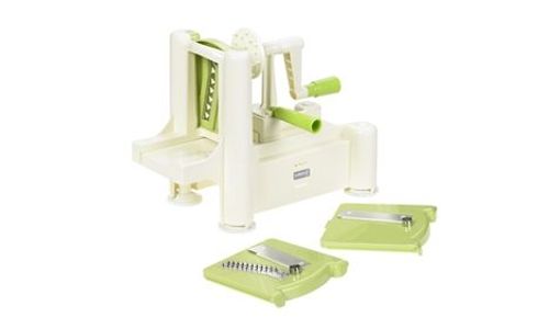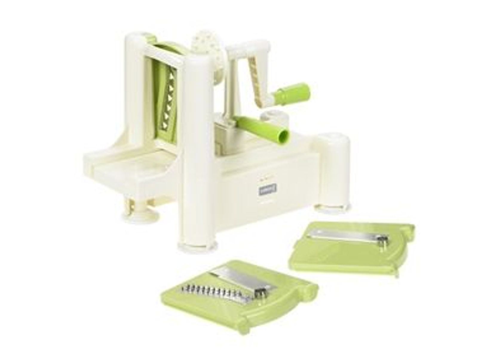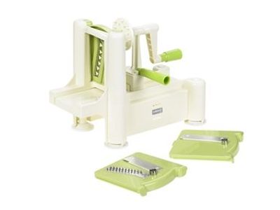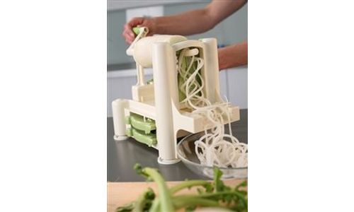 Met de Spirali van Lurch kan je gemakkelijk spiralen, spaghetti of schijfjes maken van groenten en fruit. In het toestel zitten 3 afneembare messen met stalen messen opgeborgen. De basis van de Spirali is antislip waardoor hij mooi stabiel staat en je veilig kan werken.