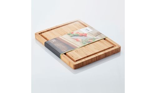 Waarom bamboe? Kiezen voor bamboe is kiezen voor de natuur! Bamboe is immers een onuitputtelijke natuurlijke rijkdom waarvoor geen bomen hoeven te worden omgehakt. Bovendien is het harder en minder poreus dan de meeste hardhoutsoorten en absorbeert het zeer weinig vocht. Bamboe is niet zo gevoelig voor krassen en schrammen van messen als andere houtsoorten waardoor ze beter bestand zijn tegen bacteriën. Hét ideale materiaal dus voor in de keuken en eetkamer! Houd je bamboeproducten schoon met water en wrijf af en toe in met minerale olie om de levensduur te verlengen. Afmetingen: 40 x 30 x 3cm |