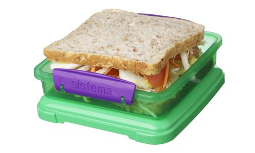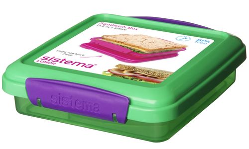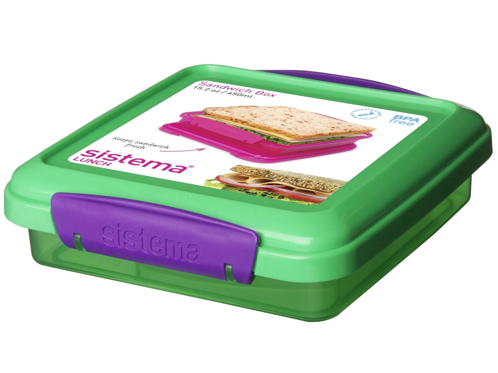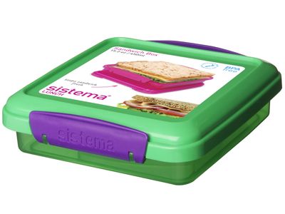 Fleur uw lunch op met de kleurrijke Sistema® Lunch Sandwich Box om ervoor te zorgen dat uw broodje vers en op zijn plaats blijft tot je klaar bent om te eten. Met de eenvoudig te vergrendelen clips en de flexibele afdichting blijft uw broodje langer vers.