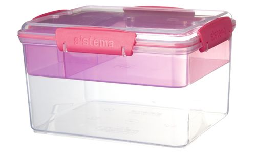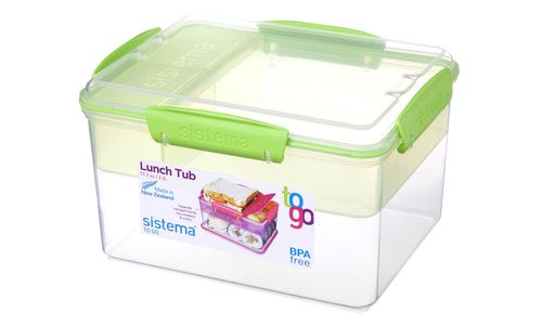 De Sistema® Lunch Tub To Go™ heeft vier interne compartimenten om uw snacks gescheiden te houden tot ze klaar zijn om te eten. De grote basis is ideaal voor salades of sandwiches, terwijl de uitneembare tray ideaal is voor snacks. Met de eenvoudig te vergrendelen clips en de flexibele afdichting blijft uw voedsel langer vers.