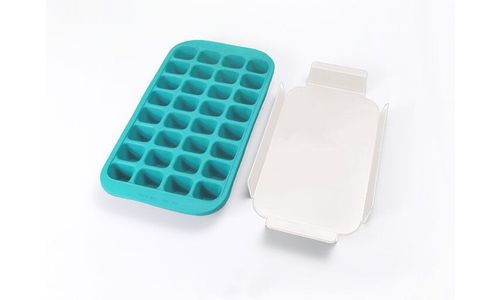 Ijsblokjesvorm uit rubber voor 32 ijsblokken blauw met deksel 33.5x18x3.3cm
