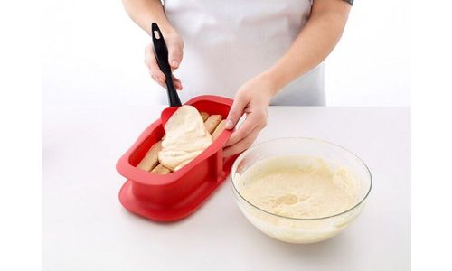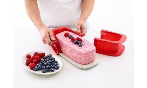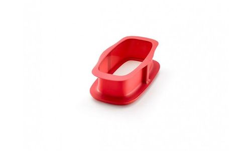 Rechthoekige springvorm uit silicone rood met keramisch bord wit 24x14.4x7.6cm