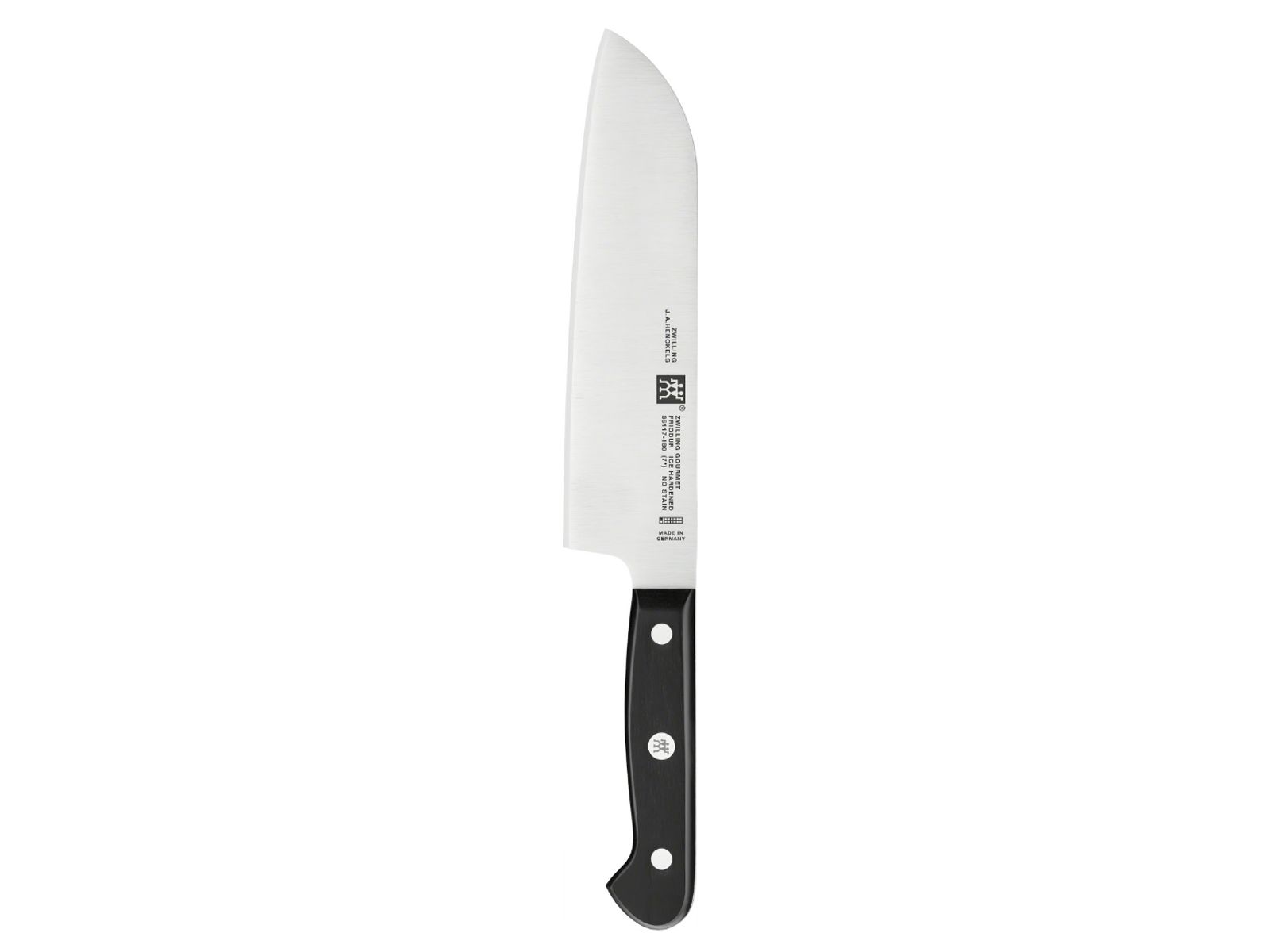 Het santokumes is de Aziatische tegenhanger van het koksmes: uitermate geschikt voor het snijden van vlees, vis en groente. Alle santokumessen van ZWILLING hebben een extra breed gepolijste rand. De robuuste greep van de traditionele messenserie ZWILLING Gourmet past perfect in de hand en harmonieert perfect met het scherpe mes.