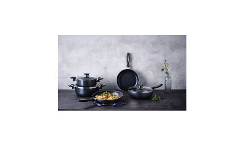 Gezond en vetarm koken met Pro Induc! Beka's best verkochte collectie! De antikleeflaag met honingraatmotief vermindert het contact tussen de vetstof en het voedsel.