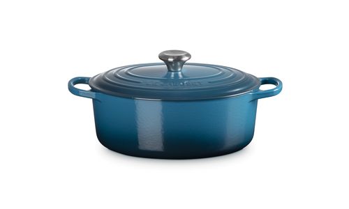 Dit ovale exemplaar is net zo veelzijdig als onze klassieke, ronde Stoofpan. De pan is groot genoeg om een hele lamsbout te braden en smal genoeg om ruimte over te laten in de oven voor extra bereidingen. Wat u ook serveert, dit belangrijkste hulpmiddel van de kok helpt u bij het creëren van verbluffende en smaakvolle gerechten.