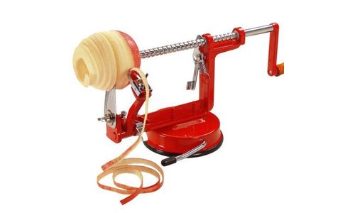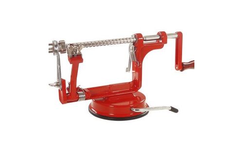 Met zijn ingenieuze ontwerp, bekent deze rode appelschiller duidelijk kleur! In een mum van tijd is de karwei voorbij: schillen, snijden en ontpit en enkele draaibewegingen.