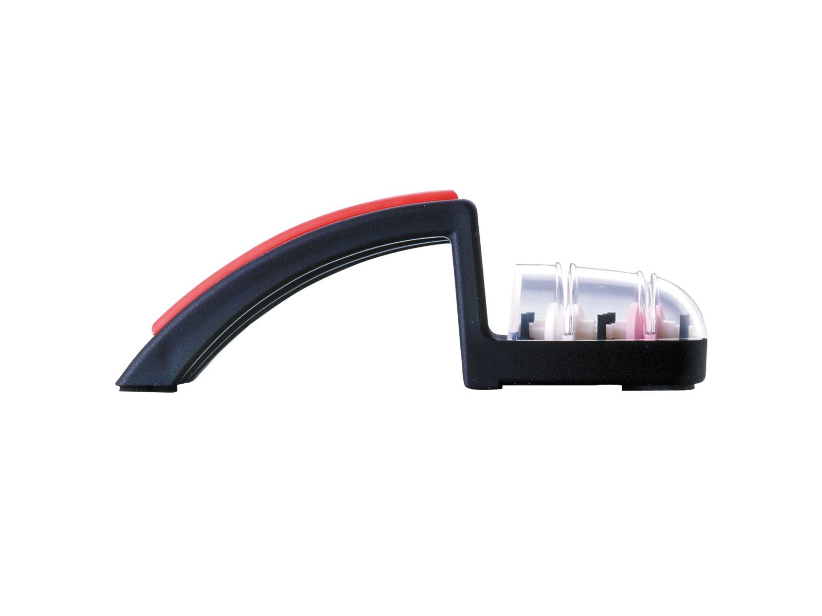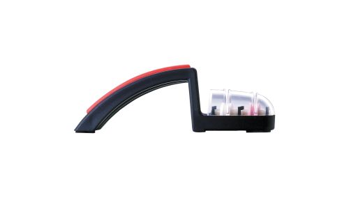Deze slijper bestaat uit twee keramische wieltjes, het witte wieltje is grof, het rose wieltje is medium en maakt het slijpproces af. Omdat de slijpgleuf en het keramische wieltje onder een nauwgezette hoek staan is het mogelijk de messen weer vlijmscherp te krijgen. Deze slijper is niet geschikt voor messen die aan 1 kant zijn geslepen of gekartelde messen.