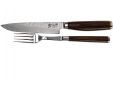 Steakmes / steakvork in set | TDM-0907 in houten cassette, 29,8 x 13,6 x 3,3 cm L/B/H