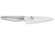 De Seki Magoroku Shoso messen zijn met hun zakelijke, elegante uitstraling een highlight in iedere keuken. Met veel technische expertise worden deze gesmede messen uit roestvrij staal geslepen en gehoond. Het resultaat is een mes met een excellente scherpte, robuustheid en duurzaamheid, en daarmee uitermate geschikt voor dagelijks gebruik in de keuken. De lemmets worden geproduceerd met de modernste technieken, en om frictie aan de snede te verminderen op een laag toerental geslepen. Daardoor is iedere Shoso bijzonder scherp en is de wrijving tussen mes en het snijgoed minimaal. Het ergonomische stalen heft met ruitjespatroon vormt een naadloze overgang naar het mooie gesatineerde lemmet van roestvast staal. De koksmessen zijn in zijn geheel vervaardigd uit staal en daardoor aangenaam licht, veilig te hanteren en uiterst hygiënisch.