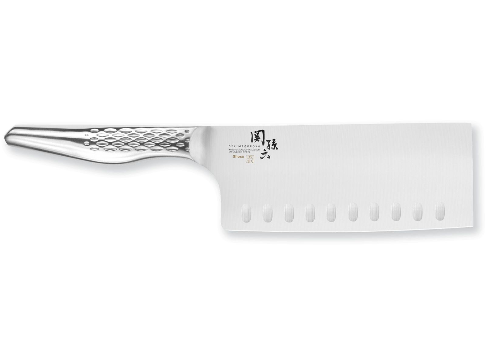 De Seki Magoroku Shoso messen zijn met hun zakelijke, elegante uitstraling een highlight in iedere keuken. Met veel technische expertise worden deze gesmede messen uit roestvrij staal geslepen en gehoond. Het resultaat is een mes met een excellente scherpte, robuustheid en duurzaamheid, en daarmee uitermate geschikt voor dagelijks gebruik in de keuken. De lemmets worden geproduceerd met de modernste technieken, en om frictie aan de snede te verminderen op een laag toerental geslepen. Daardoor is iedere Shoso bijzonder scherp en is de wrijving tussen mes en het snijgoed minimaal. Het ergonomische stalen heft met ruitjespatroon vormt een naadloze overgang naar het mooie gesatineerde lemmet van roestvast staal. De koksmessen zijn in zijn geheel vervaardigd uit staal en daardoor aangenaam licht, veilig te hanteren en uiterst hygiënisch.