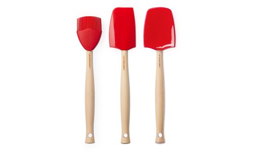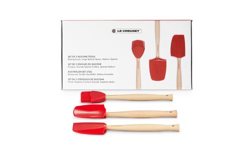 Houd dit slimme trio hulpmiddelen bij de hand wanneer u kookt of bakt. Het trio bestaat uit onze middelgrote spatel, grote spatellepel en bakkwast en is uitgevoerd in het iconische Kersenrood van Le Creuset. Elk hulpmiddel is van hoogwaardig silicone gemaakt en is flexibel in het gebruik en eenvoudig schoon te maken. Verwen uzelf, of doe een transformerend geschenk cadeau.
