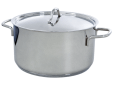 De BK Profiline is een pannenserie zonder opsmuk die ongecompliceerd gemak biedt op elk fornuis. De pannen hebben een body van hoogglans gepolijst roestvrij edelstaal met een handige schenkrand. De body en bodem lopen vloeiend en afgerond in elkaar over, wat zorgt voor moeiteloos omroeren en eenvoudige reiniging. De grepen en stelen liggen prettig in de hand en zorgen voor een veilige grip tijdens het kookproces. De deksels zijn hoogglans gepolijst en maken het geheel mooi af.