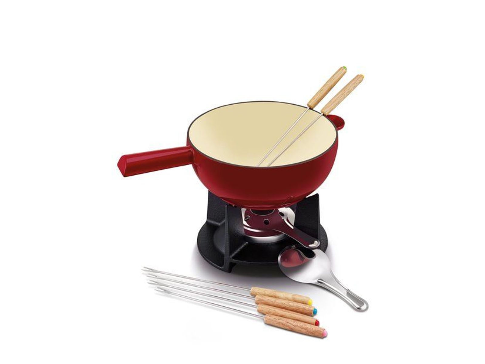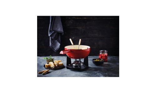 - Duurzame gietijzeren fondue pot voor een excellente warmteverdeling en warmtebehoud.
