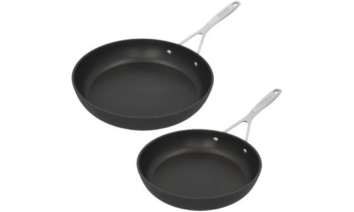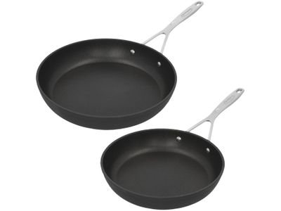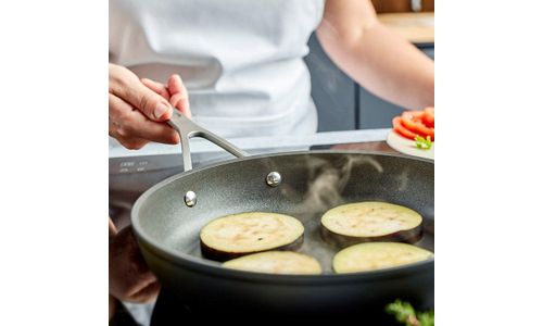 Met deze set pannen (24 en 28 cm doorsnede) gaat bakken als vanzelf. Beter nog: je hebt heel weinig vetstof nodig voor een rijke smaak. Zalmfilet, worstjes, kipsatés, groenten, eieren en tofu … Noem maar op, alles lukt in deze vlot hanteerbare pannen uit de Alu Industry 3 serie. Reinigen is zo gebeurd. De bijzonder efficiënte Duraslide® antikleeflaag is de topper binnen de traditionele antikleeflagen. Deze PTFE-coating telt drie lagen, zodat je kookgerei extra lang als nieuw blijft. Op voorwaarde dat je enkel accessoires van silicone of hout gebruikt. Onze Alu Industry 3 bakpannen in gesmeed aluminium zijn dikker en dus sterker. Goed voor jarenlange trouwe dienst op alle kookplaten, ook inductie. Dankzij de unieke Radiant® bodem zijn en blijven je pannen extra stabiel en in optimaal contact met de kookplaat. De warmte wordt egaal verspreid. De roestvrijstalen greep is stevig bevestigd en voelt aangenaam in de hand. Wil je graag grillen in de oven of flamberen? Dan heb je ook een pan zonder antikleeflaag nodig.
