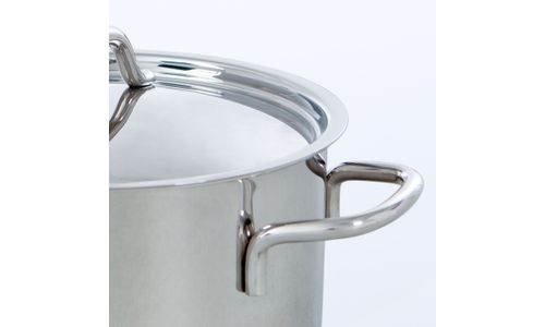 De BK Profiline is een pannenserie zonder opsmuk die ongecompliceerd gemak biedt op elk fornuis. De pannen hebben een body van hoogglans gepolijst roestvrij edelstaal met een handige schenkrand. De body en bodem lopen vloeiend en afgerond in elkaar over, wat zorgt voor moeiteloos omroeren en eenvoudige reiniging. De grepen en stelen liggen prettig in de hand en zorgen voor een veilige grip tijdens het kookproces. De deksels zijn hoogglans gepolijst en maken het geheel mooi af.