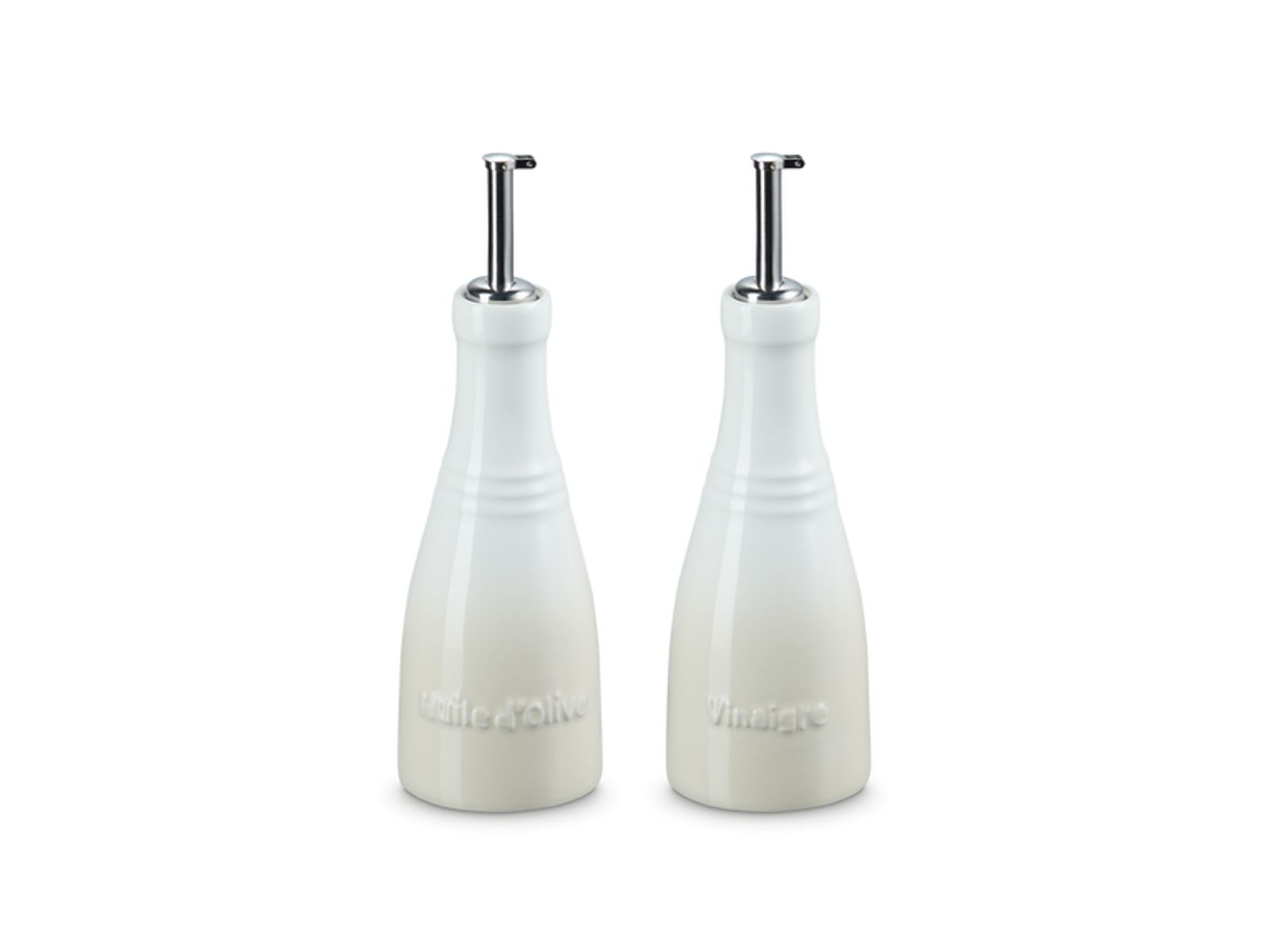 Bewaar uw favoriete azijn en olie in deze prachtige flessen om direct een stijlstatement te creëren. Ze zijn gemaakt van hoogwaardig Le Creuset-aardewerk, een lust voor het oog en perfect te combineren met onze zout- en pepermolens. Dankzij de handige schenktuiten kunt u bovendien moeiteloos schenken.