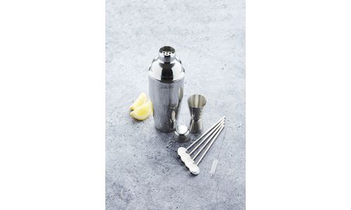 Cocktailset met Cobbler shaker, cocktailmaatje en set van 4 rietjes/lepels
