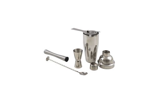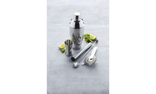 Cocktailset met Cobbler shaker, cocktailmaatje, stamper, barlepel en cocktailzeef