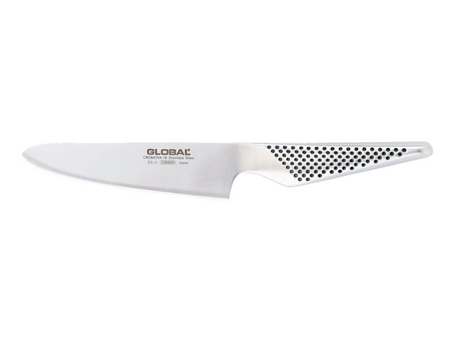 Het kleine broertje van de G-1, met het klassieke GS Global handvat, de GS-2 heeft hetzelfde lemmet, maar korter, namelijk 13 cm. Met het ronde uiteinde van het mes kun je in bot vlees zoals kip en eend snijden zonder dat de punt van het mes in het bot blijft steken. De GS-2 is in feite de GS-3 met een afgerond uiteinde en kan daarom ook worden gebruikt als een universeel koksmes voor snijden en hakken.