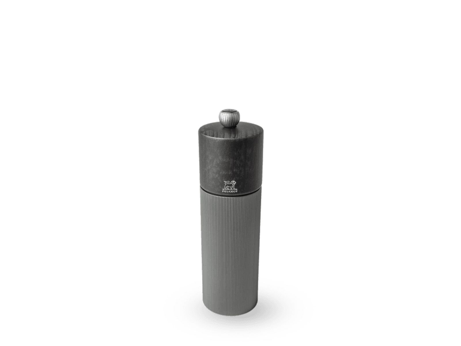 De regenboogachtige tint van de body in aluminium past perfect bij de subtiel metaalachtige grafietkleur van de kop van hout (met het PEFC-keurmerk). Hij is vervaardigd in Frankrijk en weerspiegelt eveneens de vakkennis van Peugeot: het stalen maalwerk dat speciaal is ontworpen voor het malen van peper, heeft een onbeperkte garantie en de knop biedt een eenvoudige en efficiënte instelling van de maalgraad (hoe strakker hij is aangedraaid, hoe fijner de maalgraad van de peper).