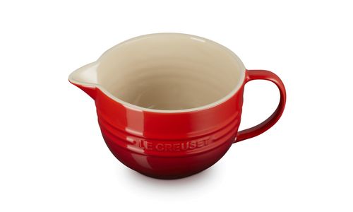 Wilt u een taart maken? Of een paar pannenkoeken bakken? Onze aardewerken mengkan is perfect voor het bereiden van uw beslag. Dankzij de grote handgreep kunt u de kan stabiel houden terwijl u roert. En dankzij de handige tuit kunt u uw beslag gieten zonder bang te hoeven zijn voor morsen. Alle heerlijke smaken. Zonder de rommel.