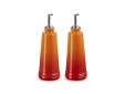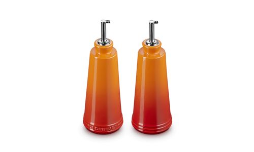 Of u nu een frisse salade maakt of een scheutje olie toevoegt aan een hete pan, deze eigentijdse aardewerkset is ontworpen voor dagelijks gebruiksgemak. Één van de flessen heeft het Le Creuset merk en de ander heeft enkel de iconische Le Creuset ringen, zo houdt u de flessen makkelijk uit elkaar. Dankzij de roestvrijstalen mondstukken schenkt u daarnaast met precisie uw favoriete olie en azijn.