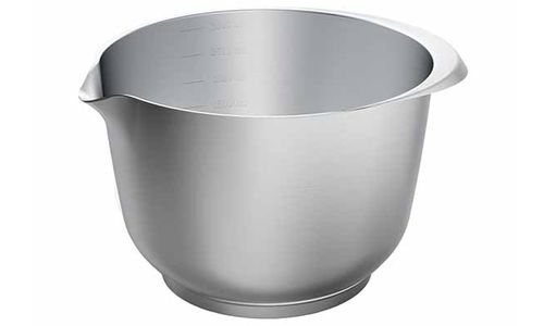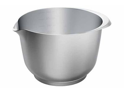 Meng- en serveerkom: 3,0 liter inhoud, gemaakt van robuust roestvrij staal, met antislipbodem, schaalverdeling, met praktische schenktuit, handgreep voor een stevige grip, geur- en smaakneutraal, zuurbestendig, hittebestendig tot +180 °C, vaatwasserbestendig, niet geschikt voor de magnetron