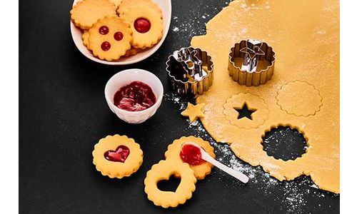 Met onze nieuwe Linzer koekjesvormpjes is het bakken van deze heerlijke koekjes nu nog eenvoudiger. Steek twee cirkels uit, draai de vorm en snijd het kleine motiefje in het midden van de ene cirkel. Bestrijk na het bakken met heerlijke gelei, monteer en bewaar in de koelkast. Simpel – en zó lekker!