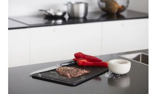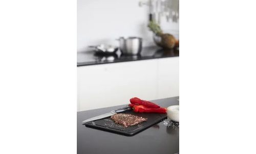 snijplank met sapgeul uit houtvezel zwart 44x32.5x0.6cm FSC MIX