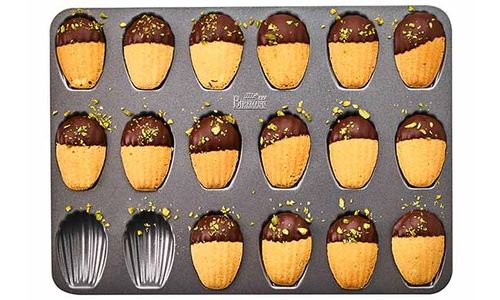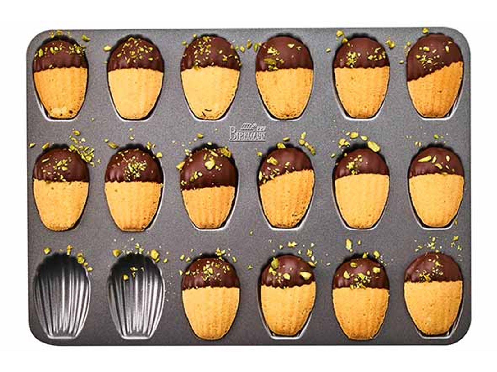 Madeleines zo lekker als in Frankrijk - met de Madeleine-/beerpootvorm uit het thema Easy Baking Met de wereld van RBV Birkmann tover je tot wel 18 heerlijke lekkernijen in de traditionele schelpvorm. De bakvorm van koolstofstaal schittert met een uitstekende antiaanbaklaag van een topmerk, waardoor de baksels na het bakken als bij toverslag uit de vorm komen. De bijzonder stabiele constructie maakt de bakvorm tot een duurzame metgezel - RBV Birkmann geeft er maar liefst 5 jaar garantie op! De bakvorm is hittebestendig tot 230 graden en meet 37 x 26 x 1,5 cm. Inclusief een recept voor heerlijke berenklauwen.