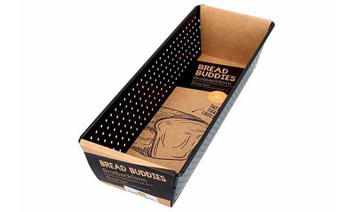 Dan moet u het misschien zelf eens proberen, want bakken maakt u blij en ontspant u. En wij weten waar we het over hebben. Er zijn veel redenen om zelf brood te bakken. Een belangrijke is bijvoorbeeld dat uw brood zo vrij is van toevoegingen, kunstmatige rijsmiddelen of conserveringsmiddelen. Een andere is dat u geld bespaart. Om u te helpen bij deze onderneming, hebben we de bijpassende broodbakvormen. Deze zijn gemaakt van speciaal geperforeerd en zeer hoogwaardig koolstofstaal en staan ??voor een uitzonderlijk goede warmtegeleiding. De fijne perforaties laten overtollig vocht ontsnappen tijdens het bakken. Het resultaat: zelfgebakken, goed brood - knapperig van buiten en luchtig zacht van binnen. We hebben ook gedacht aan een goede antiaanbaklaag, zodat u uw brood na het bakken gemakkelijk uit de vorm kunt halen. Overigens zijn de vormen uit de Bread Buddies-serie verkrijgbaar in 3 verschillende maten. In 20 cm, als mini-versie voor het kleine huishouden of de kleine Appetite, en in 30 cm als XL-versie. Wij hopen dat u geniet van het gebruik van onze bakvormen. Misschien probeert u wel een van onze favoriete recepten uit, die u kunt lezen via de QR-code op de verpakking. Wij ontvangen graag foto's, feedback of geweldige suggesties.