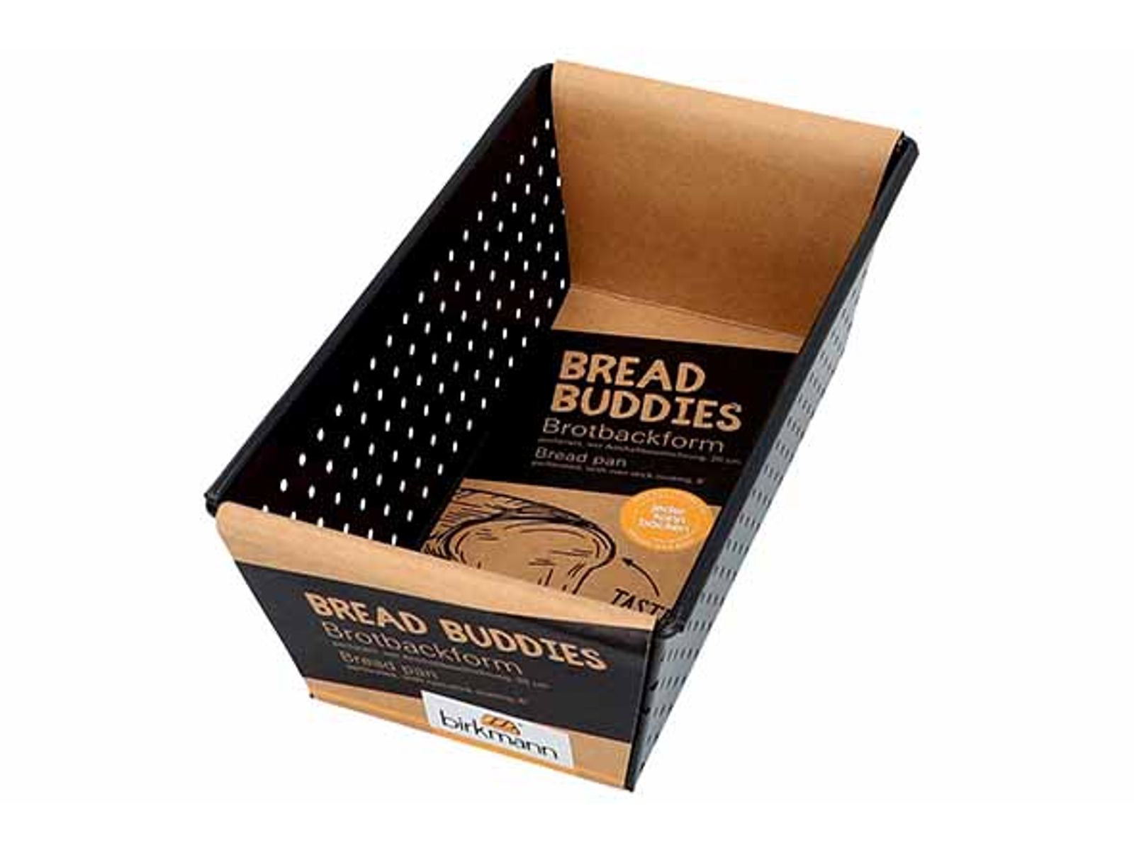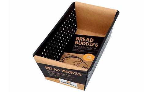 Dan moet u het misschien zelf eens proberen, want bakken maakt u blij en ontspant u. En wij weten waar we het over hebben. Er zijn veel redenen om zelf brood te bakken. Een belangrijke is bijvoorbeeld dat uw brood zo vrij is van toevoegingen, kunstmatige rijsmiddelen of conserveringsmiddelen. Een andere is dat u geld bespaart. Om u te helpen bij het slagen in deze onderneming, hebben we de bijpassende broodbakvormen. Deze zijn gemaakt van speciaal geperforeerd en zeer hoogwaardig koolstofstaal en staan ??voor een uitzonderlijk goede warmtegeleiding. De fijne perforaties laten overtollig vocht ontsnappen tijdens het bakken. Het resultaat: zelfgebakken, goed brood - knapperig van buiten en luchtig zacht van binnen. We hebben ook gedacht aan een goede antiaanbaklaag, zodat u uw brood na het bakken gemakkelijk uit de vorm kunt halen. Overigens zijn de vormen uit de Bread Buddies-serie verkrijgbaar in 3 verschillende maten. In 20 cm, als mini-versie voor het kleine huishouden of de kleine trek, en in 30 cm als XL-versie. Wij hopen dat u geniet van het gebruik van onze bakvormen. Misschien probeert u wel een van onze favoriete recepten uit, die u kunt lezen via de QR-code op de verpakking. Wij ontvangen graag foto's, feedback of geweldige suggesties.