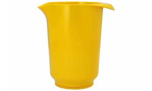 De mengkom is perfect doordacht. Het veilige handvat en de tuit zorgen voor een gemakkelijke bediening en de antislipring van siliconen aan de onderkant, voor een antislipstand.