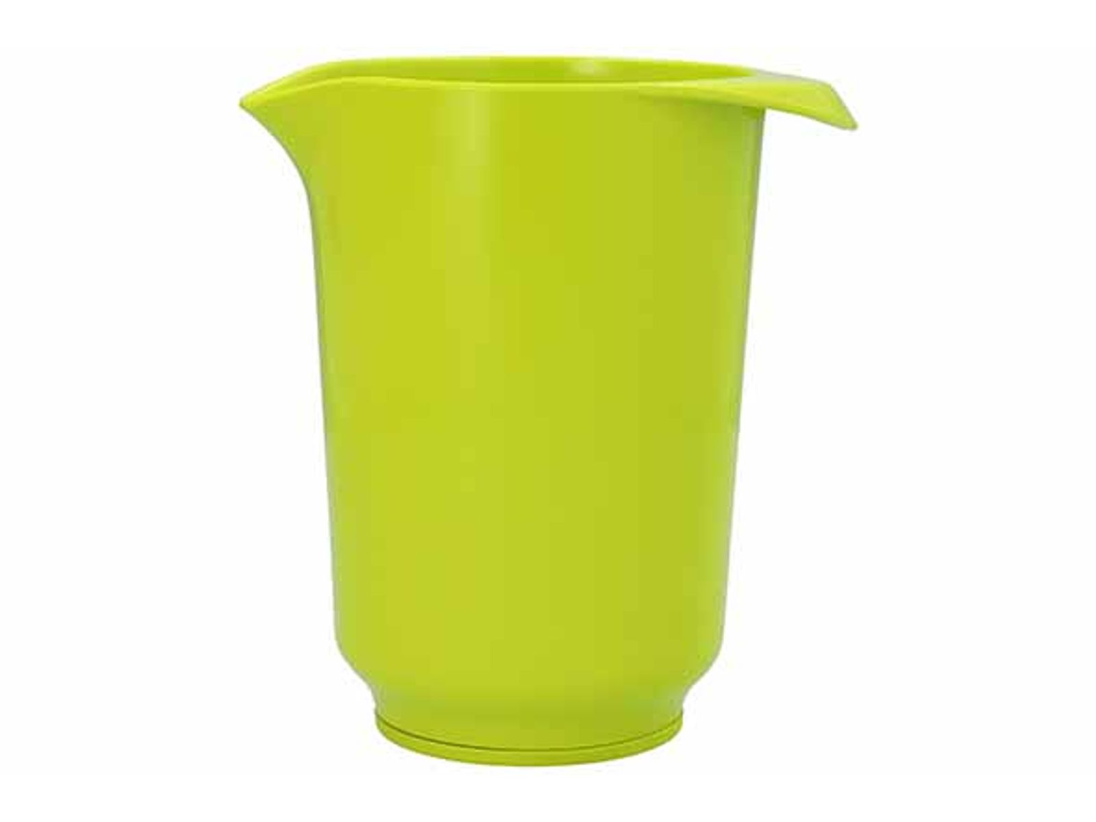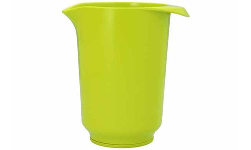 De mengkom is perfect doordacht. Het veilige handvat en de tuit zorgen voor een gemakkelijke bediening en de antislipring van siliconen aan de onderkant, voor een antislipstand.