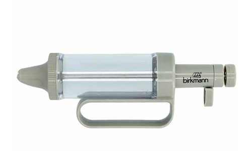 Versier taarten als een professional! Met de decoratiespuit kunt u eenvoudig prachtige decoraties maken op taarten, cupcakes en vele andere bakproducten. Giet er eenvoudig de room of slagroom in, selecteer het gewenste spuitmondje en laat uw creativiteit de vrije loop! Hij is ook perfect voor het moeiteloos vullen van heerlijke donuts, donuts, soesjes enz. De eenhandige spuit is gemaakt van hoogwaardig en robuust kunststof en wordt geleverd met een extra grote container - dit bespaart u het bijvullen van de spuit. vaak. In de set zijn zes verschillende uitlopen inbegrepen en ook veel van de gangbare roestvrijstalen uitlopen uit het Birkmann-assortiment passen op de adapter. De decoratiespuit wordt geleverd in een geschenkverpakking. Ontdek jouw nieuwe favoriete bakhulp!