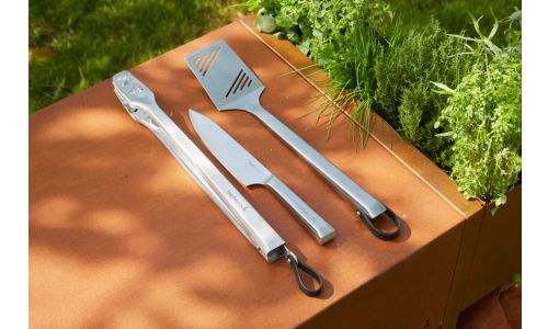 Premium set met spatel, tang en chef mes uit rvs 45.7cm