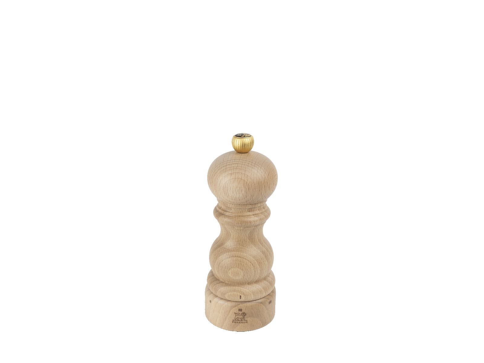Deze zoutmolen is gemaakt van beukenhout uit duurzaam beheerde Franse bossen en geschikt voor droge zoutkristallen. Dankzij het gepatenteerde u'Select-maalsysteem van Peugeot kan je zelf de maalgraad instellen en de korrelgrootte van het zout naar wens aanpassen. Het hout accentueert het iconische silhouet van de Paris-molen en bezorgt deze zoutmolen een tijdloze, elegante uitstraling. Met zijn hoogte van 15 cm is hij het ideale formaat voor aan de tafel en in de keuken.