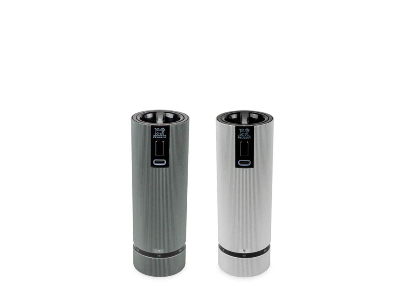 Dit zout-en-peperduo zal elke liefhebber van design en technologie weten te bekoren. Het heeft een onweerstaanbare, hedendaagse look, een uiterst precies en gepatenteerd maalsysteem en een herlaadbare lithiumionbatterij. Deze compacte molens zijn voorzien van een mechanisme met levenslange garantie en zijn met één hand te bedienen. Zo kun je stijlvol in je potten blijven roeren!