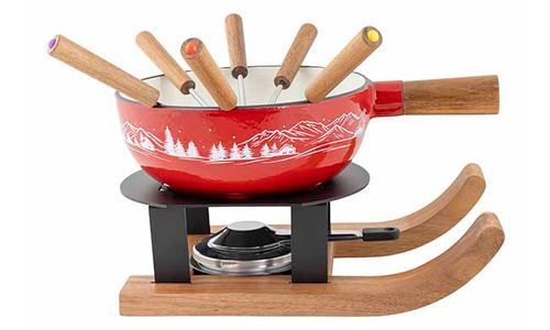 Aspen Fondueset Ski D22cm Gietijzer Rood - Met 6 Vorkjes