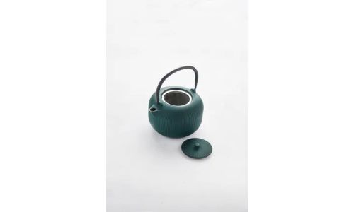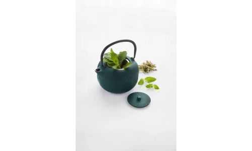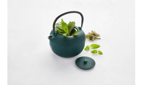 geribbelde theepot uit gietijzer 1L met interne emaillaag Forest Green