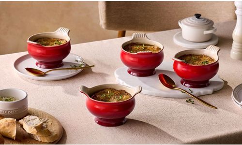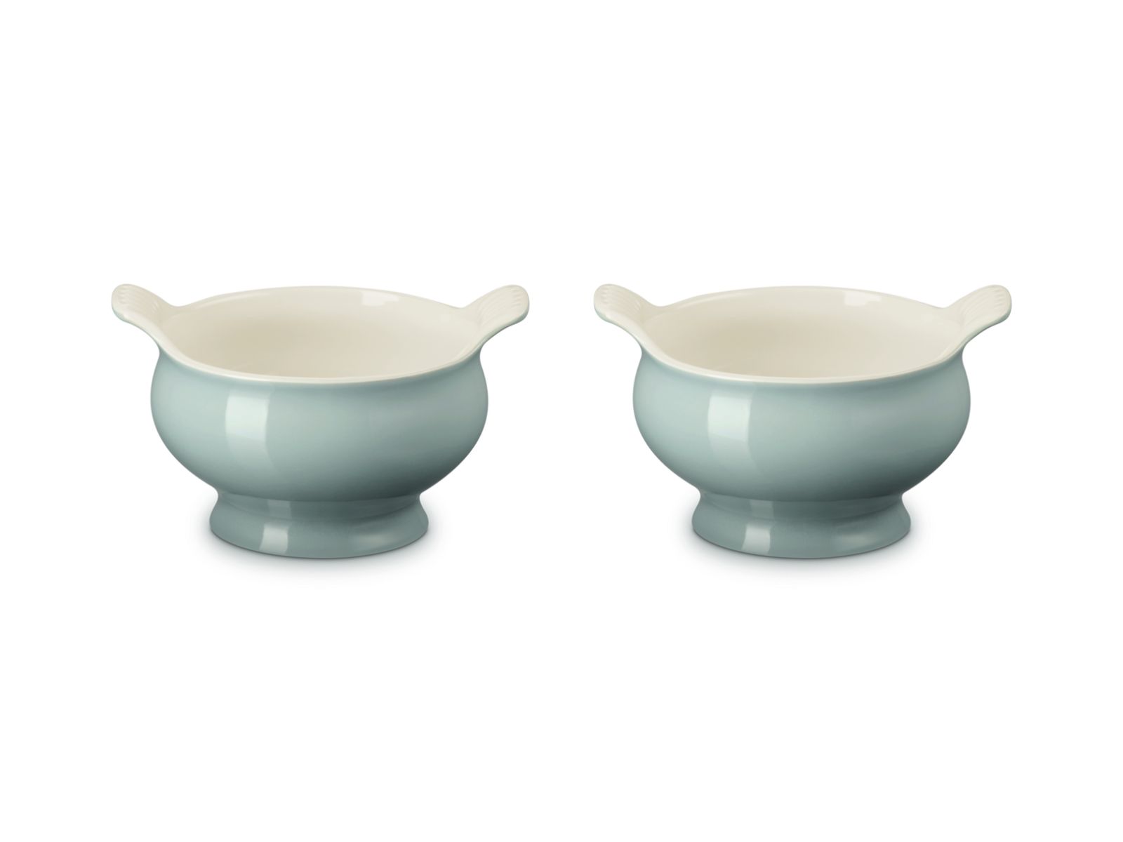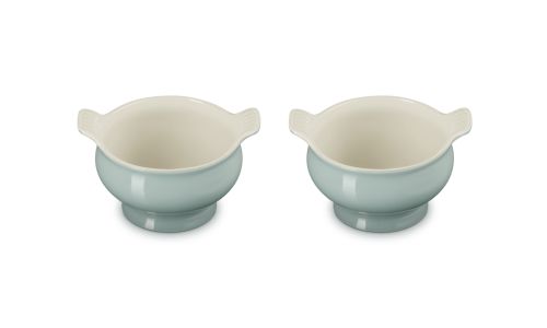 Serveer heerlijke soepen en stoofschotels voor twee, met onze set soepkommen. Ze zijn gemaakt van sterk aardewerk en kunnen in de oven worden gebuikt om een traditionele Franse uiensoep te maken. Het materiaal houdt uw voedsel bovendien langer warm als het eenmaal op tafel staat. Hij wordt gepresenteerd in een mooie doos, waardoor het een geweldig geschenk is.
