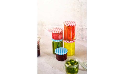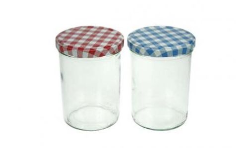 Confituurbokaal 440ml Set6 3x Rood-wit Deksel / 3x Blauw-wit