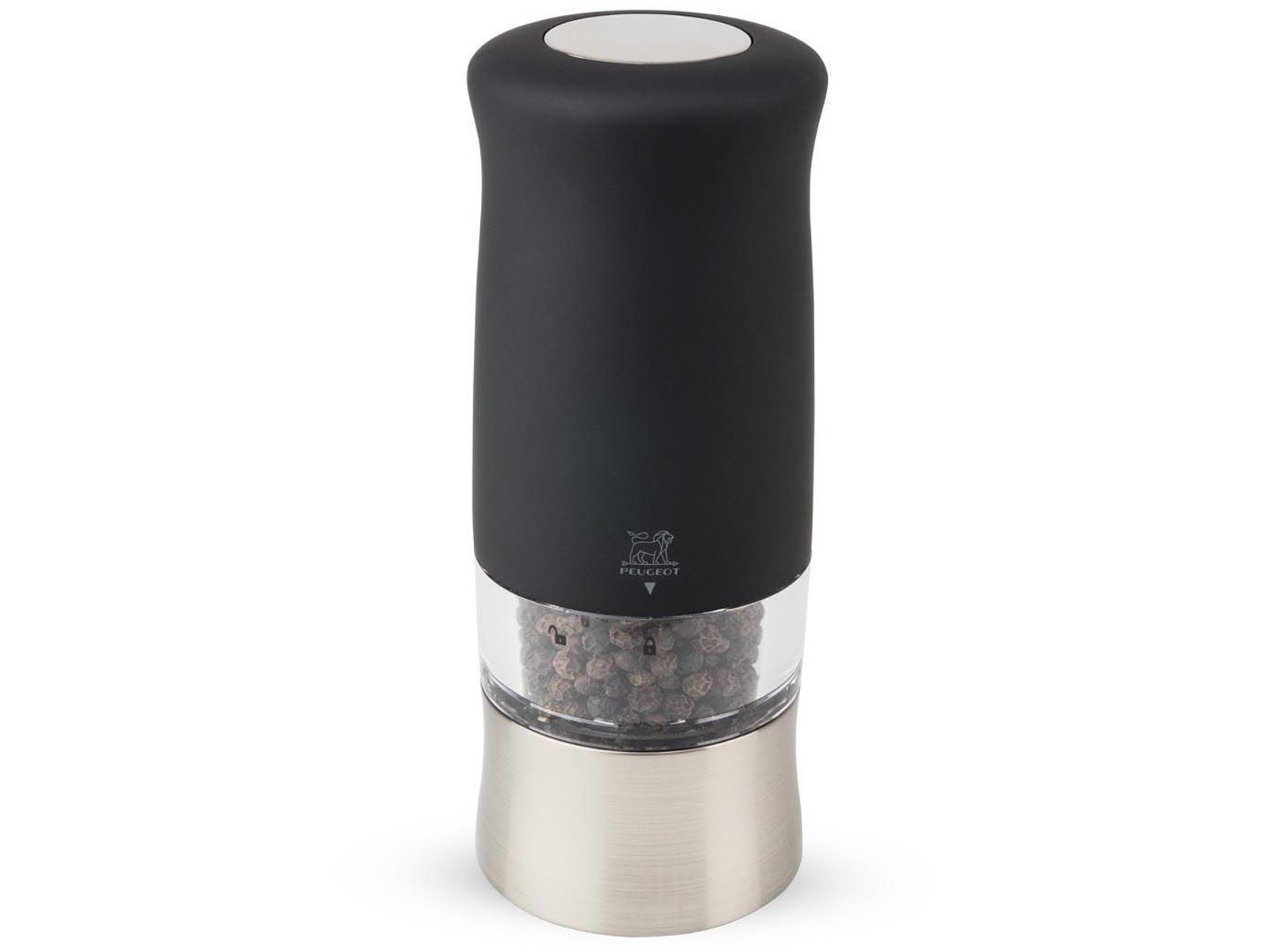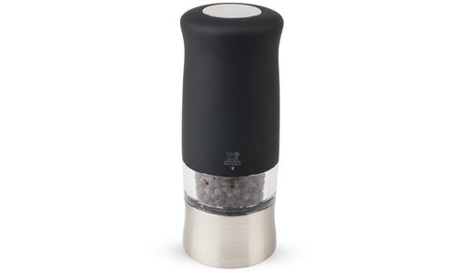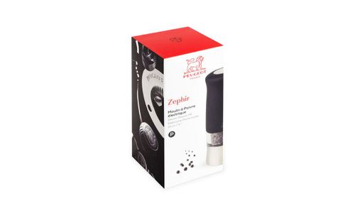 De elektrische pepermolen Zephir heeft alles om u te bekoren. Met zijn 14 cm hoogte toont hij zich bijzonder ergonomisch. Zijn Soft-touch is fluweelzacht en de knop bovenop zijn kop is met een enkel beweging van de hand te gebruiken. De instelling van de maalgraad is mogelijk dankzij een klein wieltje onder de molen. Hoe sterker het wieltje is aangedraaid, hoe fijner de maalgraad van de peper. Zijn Peugeot-maalwerk voor peper heeft een onbeperkte garantie. Hij wordt geleverd met 6 batterijen voor een effectieve start.