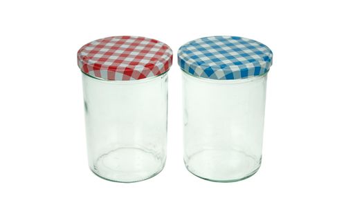 Confituurbokaal 440ml Set 3 Mix Blauw / Rood Deksel