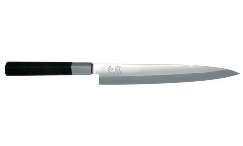 Yanagiba betekent letterlijk: Wilgenblad lemmet. Het Yanagiba mes is het traditionele Japanse mes voor het zorgvuldig slicen van vlees en vis. Door het smalle lange lemmet is het bijzonder geschikt om huigdun mee te snijden, speciaal voor sushi en sashimi. Dit mes staat garant voor een zuivere, gladde snede. De lengte en vorm van het lemmet maken een lange, trekkende snij beweging mogelijk..